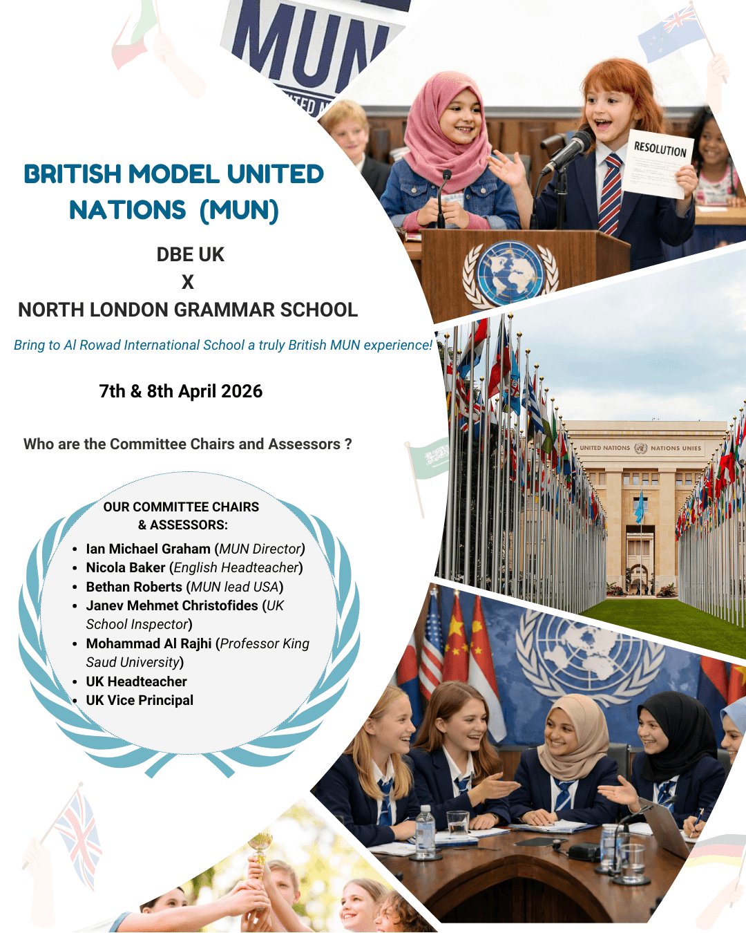 Model United Nations (MUN) is an academic simulation where students step into the roles of country representatives at the United Nations. They research global issues, debate real-world challenges, and work together to draft resolutions through diplomacy and negotiation. MUN helps students build confidence, critical thinking, public speaking, and a deeper understanding of international affairs in a practical, engaging way.